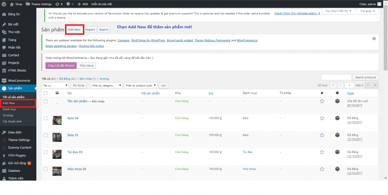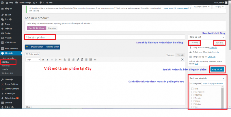 Bước 1: Bấm vào “Danh mục” (Sản phẩm)