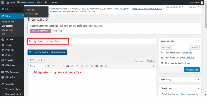 Bước 2: Thêm tiêu đề bài viết, và nội dung